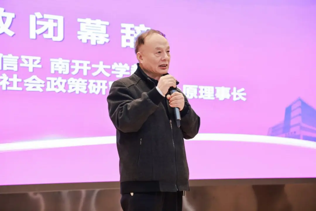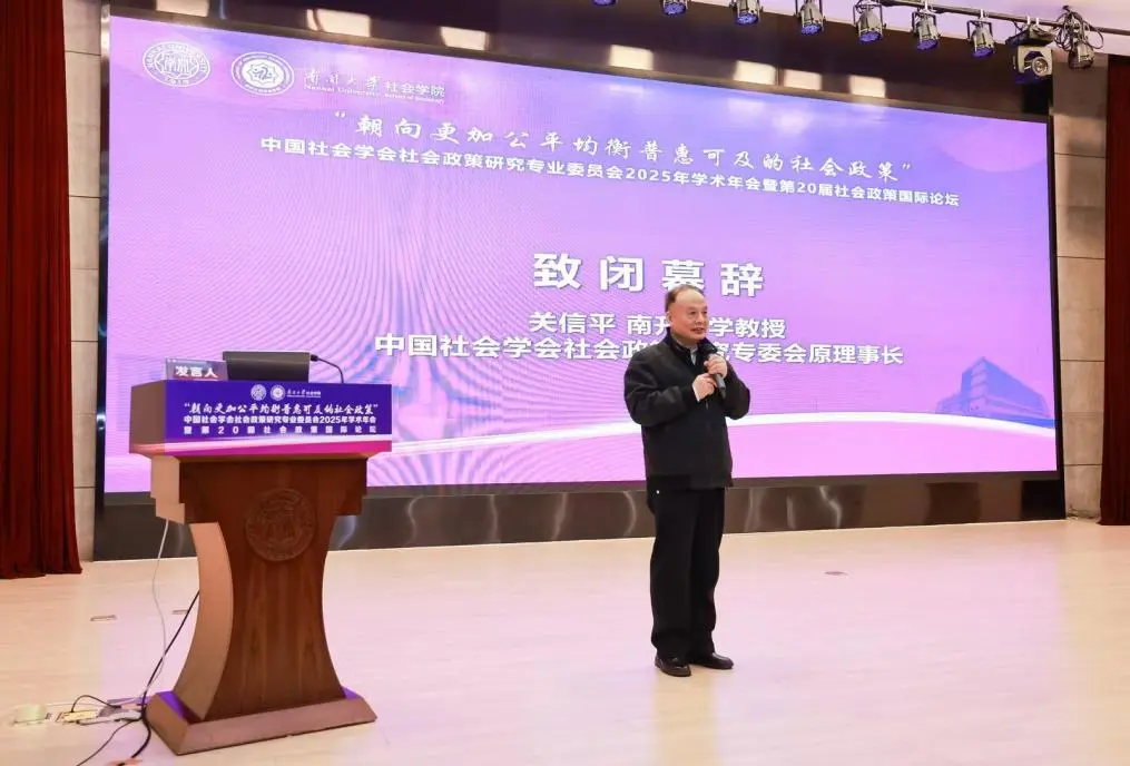 中国社会学会社会政策研究专业委员会原理事长、bwin官网社会建设与管理研究院院长关信平致闭幕辞。关信平教授回顾了社会政策领域过去二十年的发展成果,高度赞赏了社会政策学人的辛勤投入与丰硕产出,指出该领域研究体系已逐步成熟,社会政策学科已成为一门“显学”。但新时期的社会政策研究仍面临新挑战,仍需持续关注并积极回应。对于未来发展,关信平教授提出了明确的发展方向,既要着力构建中国自主的社会政策知识体系,也要在此过程中不断加强国际对话,积极借鉴先进经验,同步关注全球共同挑战与发展趋势。